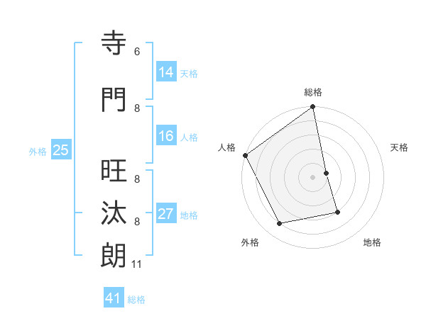 寺門 旺汰朗さんの総格は41画の5点!