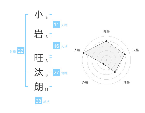 小岩 旺汰朗さんの総格は38画の4点!