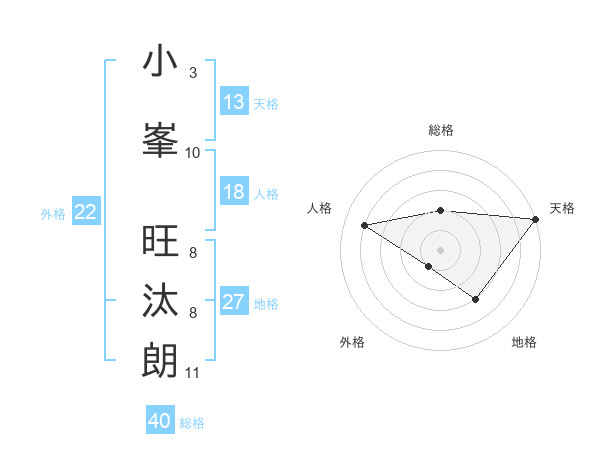 小峯 旺汰朗さんを姓名の画数から五運を鑑定