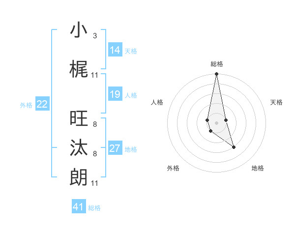 小梶 旺汰朗さんの総格は41画の5点!