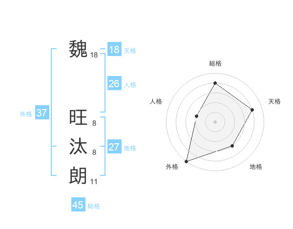 魏 旺汰朗さんの総格は45画の4点!