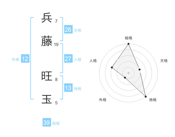 兵藤 旺玉さんの総格は39画の5点!