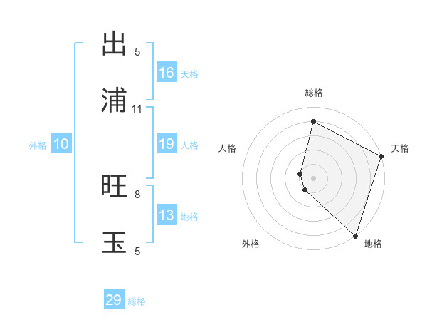 出浦 旺玉さんの総格は29画の4点!