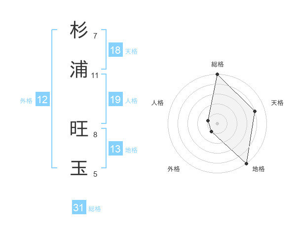 杉浦 旺玉さんの総格は31画の5点!