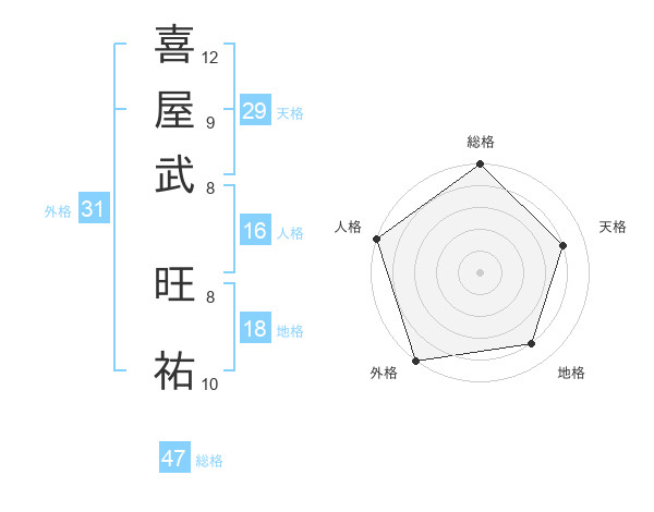 喜屋武 旺祐さんを姓名の画数から五運を鑑定
