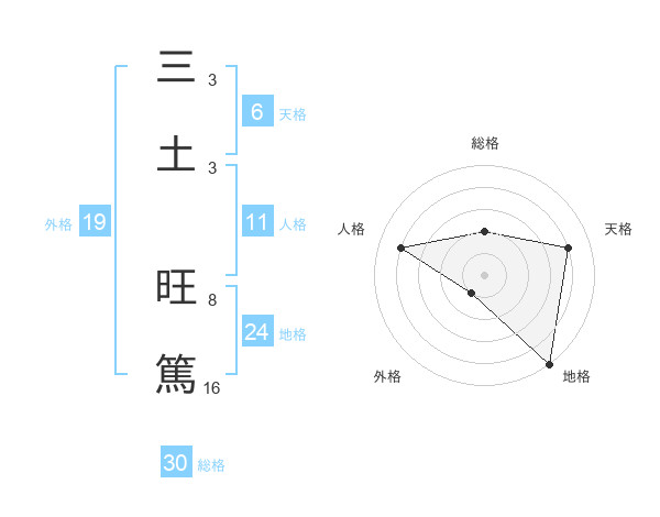 三土 旺篤さんの総格は30画の2点!