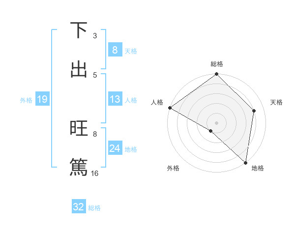 下出 旺篤さんの総格は32画の5点!