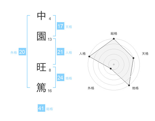 中園 旺篤さんの天格は17画の4点!