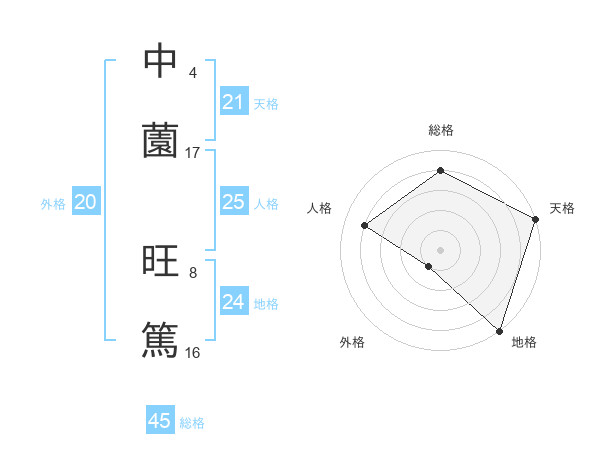 中薗 旺篤さんの天格は21画の5点!
