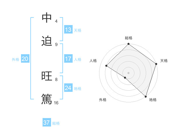 中迫 旺篤さんを姓名の画数から五運を鑑定