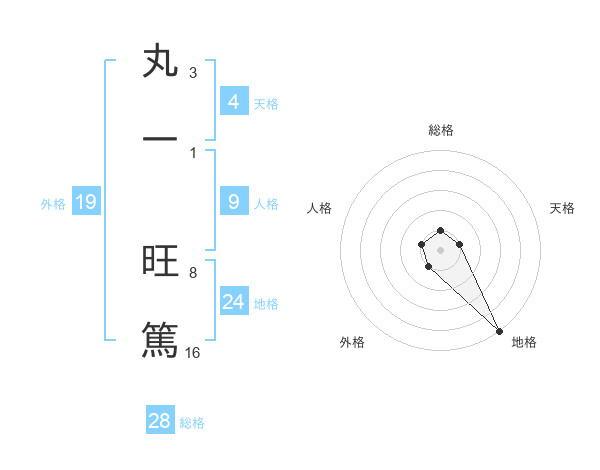 丸一 旺篤さんの外格は19画の1点!