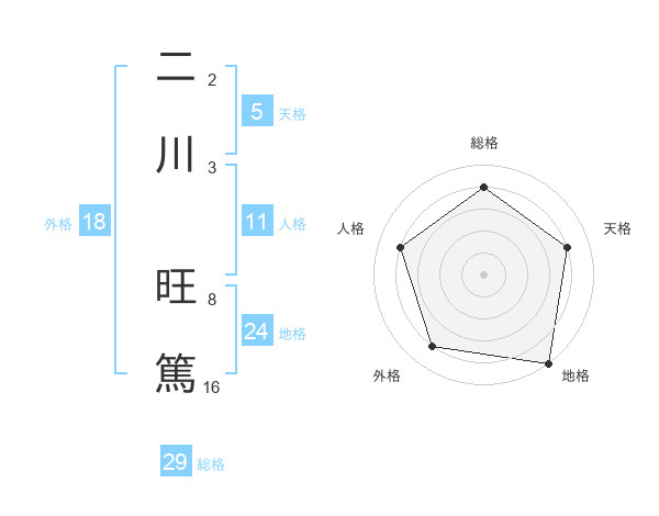 二川 旺篤さんを姓名の画数から五運を鑑定