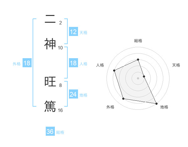 二神 旺篤さんの天格は12画の1点!