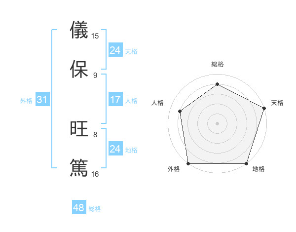 儀保 旺篤さんの天格は24画の5点!