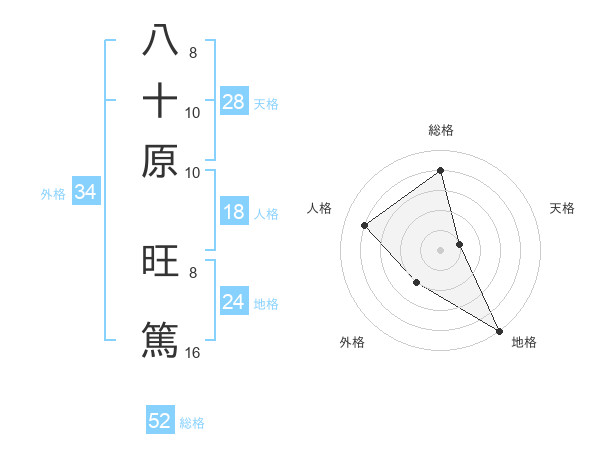 八十原 旺篤さんの総格は52画の4点!