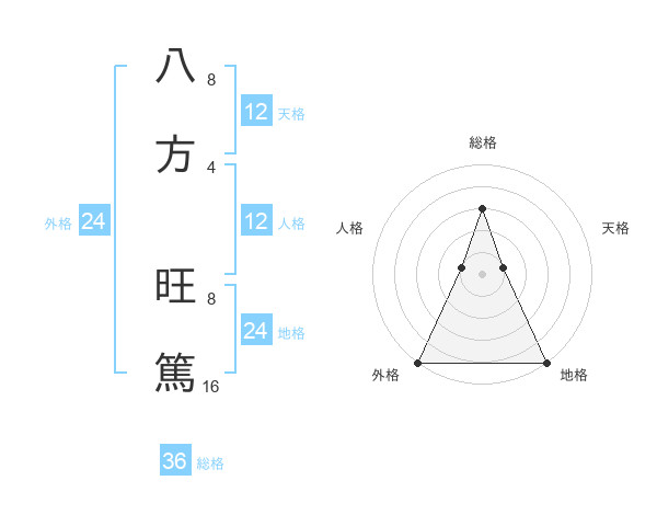 八方 旺篤さんを姓名の画数から五運を鑑定
