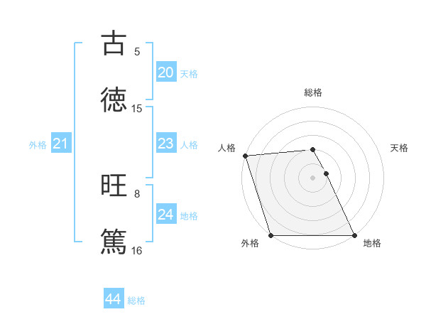 古徳 旺篤さんを姓名の画数から五運を鑑定
