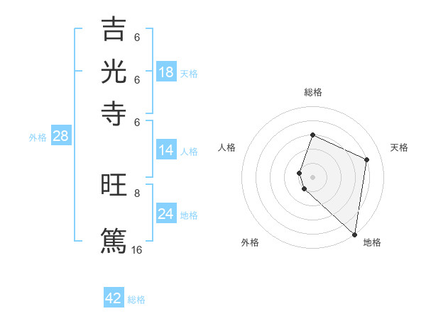 吉光寺 旺篤さんの総格は42画の3点!