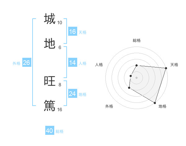 城地 旺篤さんの天格は16画の5点!