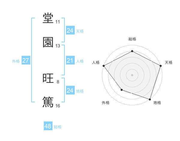 堂園 旺篤さんを姓名の画数から五運を鑑定
