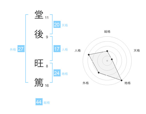 堂後 旺篤さんの総格は44画の2点!