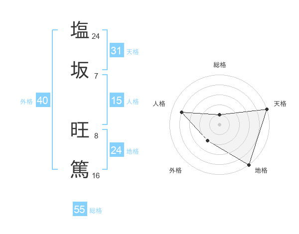 塩坂 旺篤さんの総格は55画の1点!