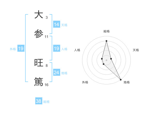 大参 旺篤さんの総格は38画の4点!