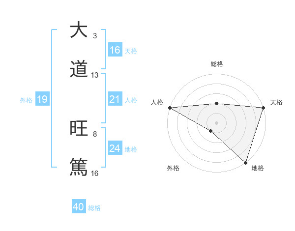 大道 旺篤さんの天格は16画の5点!