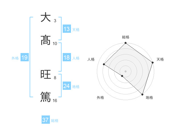 大髙 旺篤さんを姓名の画数から五運を鑑定