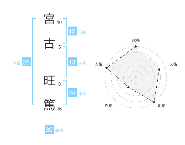 宮古 旺篤さんを姓名の画数から五運を鑑定