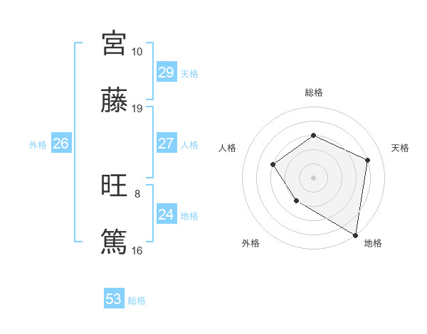 宮藤 旺篤さんを姓名の画数から五運を鑑定
