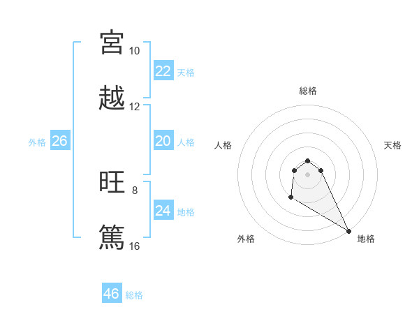 宮越 旺篤さんを姓名の画数から五運を鑑定