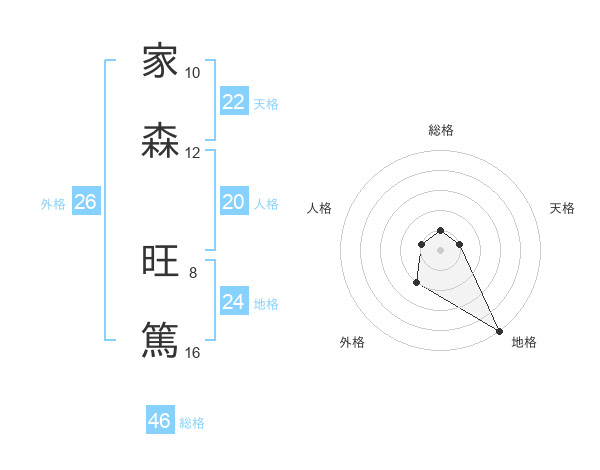 家森 旺篤さんの天格は22画の1点!