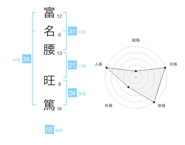 富名腰 旺篤さんの天格は31画の5点!