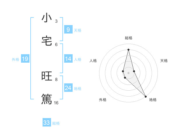 小宅 旺篤さんを姓名の画数から五運を鑑定