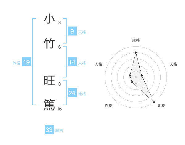 小竹 旺篤さんの総格は33画の4点!