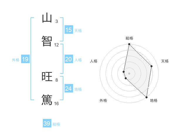 山智 旺篤さんの天格は15画の4点!