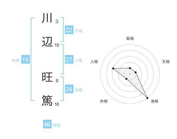 川辺 旺篤さんの総格は46画の1点!
