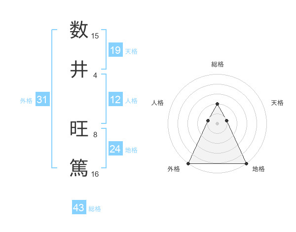 数井 旺篤さんの総格は43画の2点!