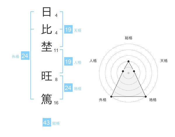 日比埜 旺篤さんを姓名の画数から五運を鑑定