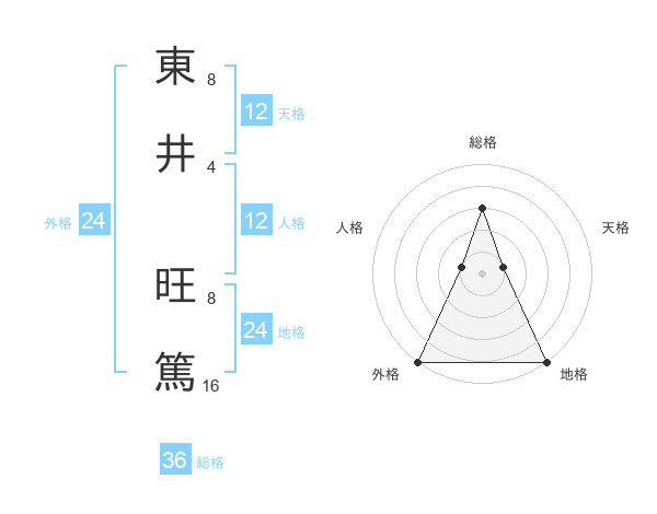 東井 旺篤さんの外格は24画の5点!