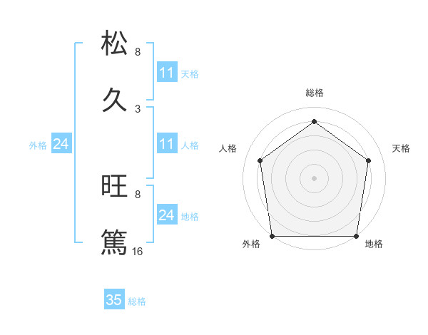 松久 旺篤さんの総格は35画の4点!