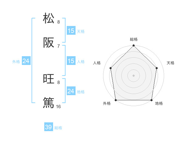 松阪 旺篤さんの外格は24画の5点!