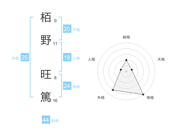 栢野 旺篤さんの総格は44画の2点!