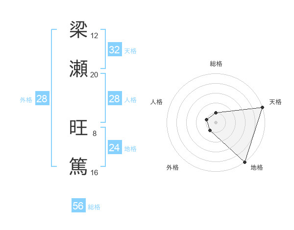 梁瀬 旺篤さんの外格は28画の1点!