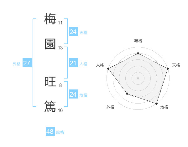 梅園 旺篤さんの総格は48画の4点!