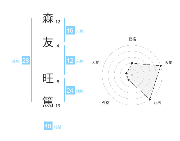 森友 旺篤さんの天格は16画の5点!