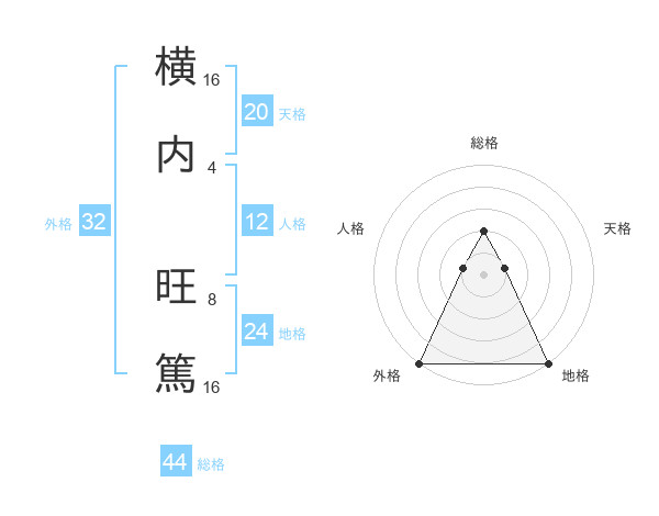 横内 旺篤さんを姓名の画数から五運を鑑定