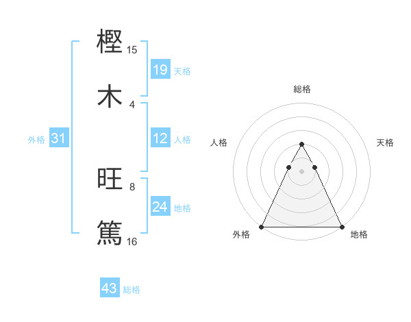 樫木 旺篤さんの天格は19画の1点!