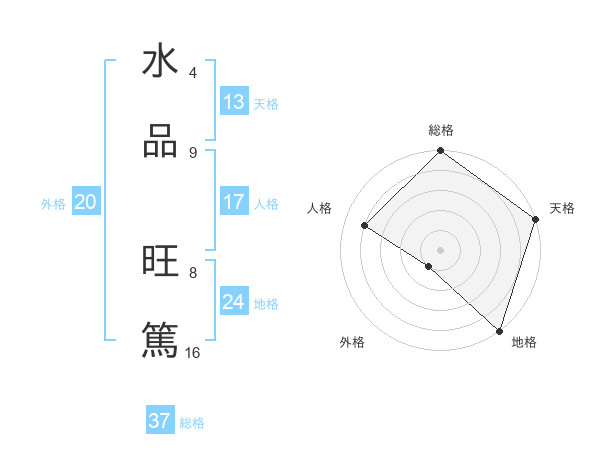 水品 旺篤さんを姓名の画数から五運を鑑定